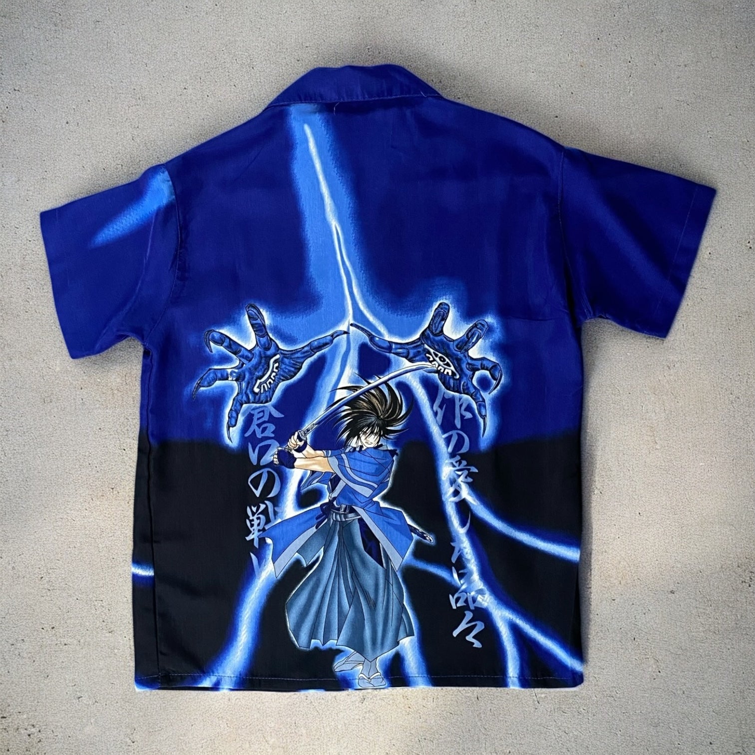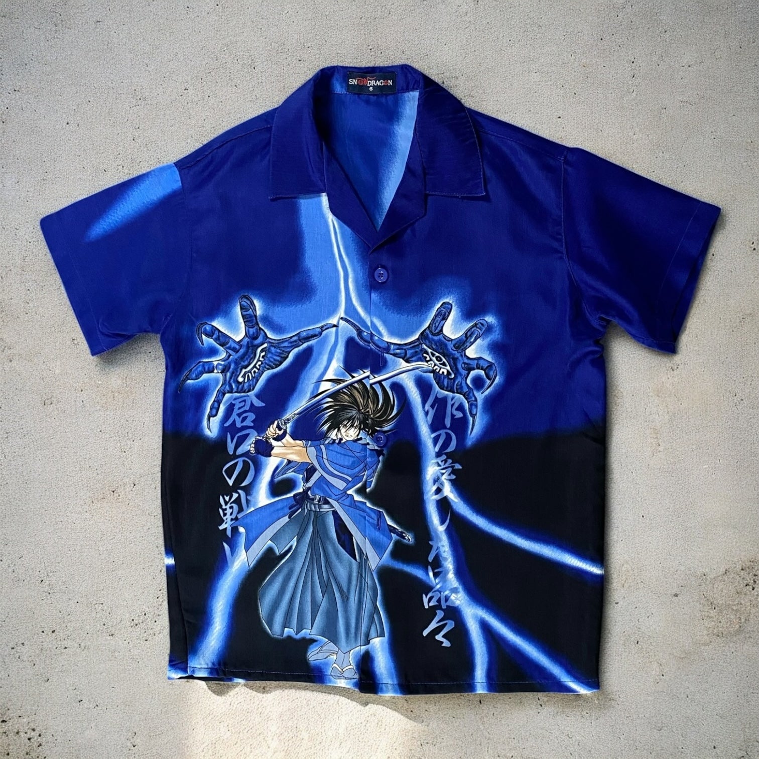Classic blue shirt featuring a bold Snow Dragon graphic, offering a relaxed fit and vintage streetwear style.