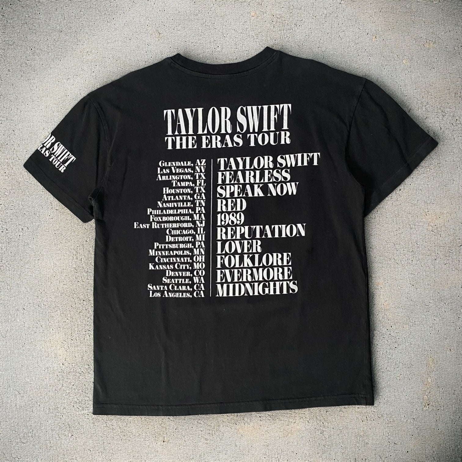 Taylor Swift The Eras Tour T-shirt featuring bold graphics with vintage-inspired tour style. Perfect for music fans and streetwear enthusiasts alike.