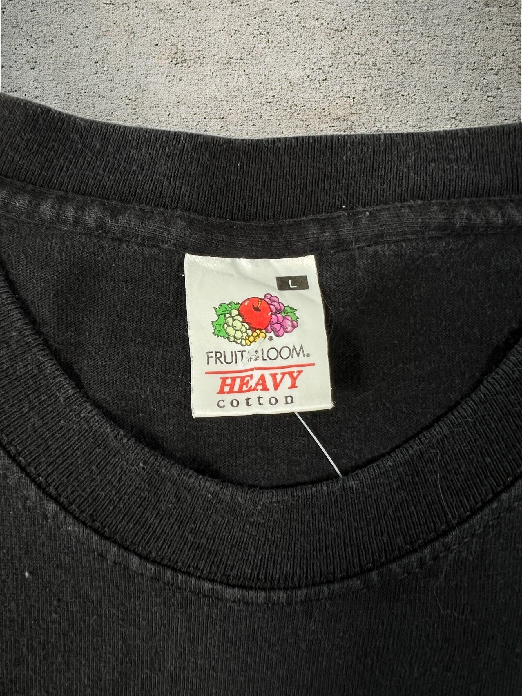 Pair with black jeans or cargos for a sleek streetwear look. Layer under a leather or denim jacket to enhance the graphic’s impact.
