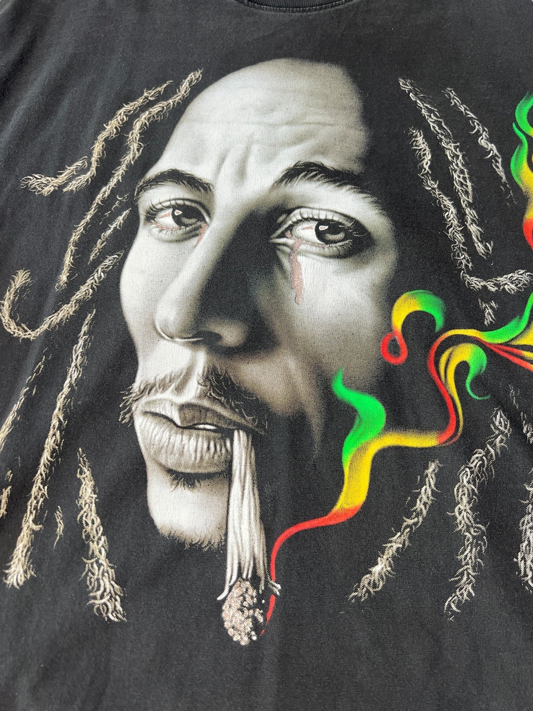 Classic 90s Bob Marley tee featuring iconic graphics, offering a relaxed fit and vintage reggae-inspired style.
