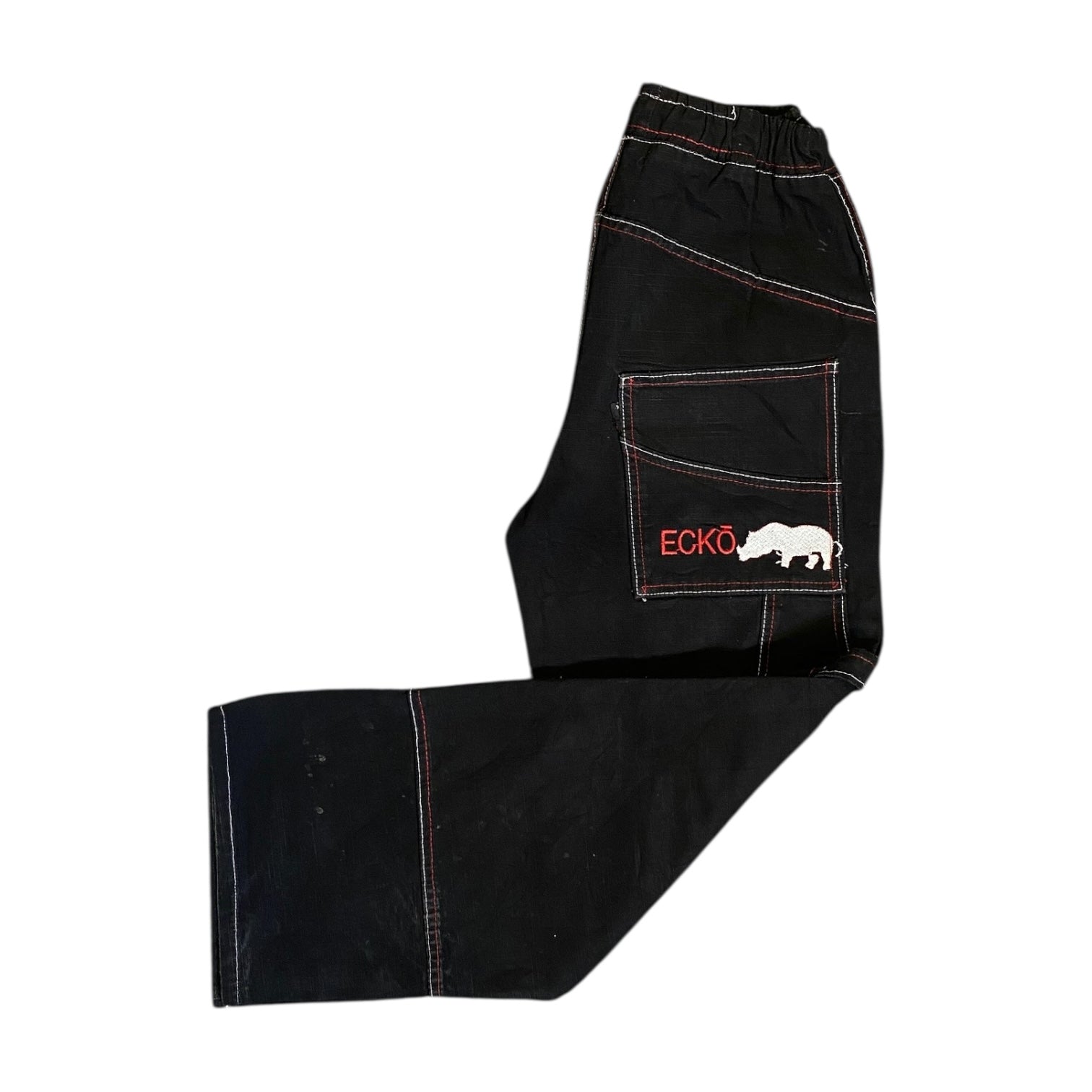 Embrace early 2000s streetwear with these vintage Ecko Unltd black jeans, designed for both style and versatility. Featuring an adjustable waistband, these jeans adapt to your fit while maintaining the bold, urban look that defined a generation.