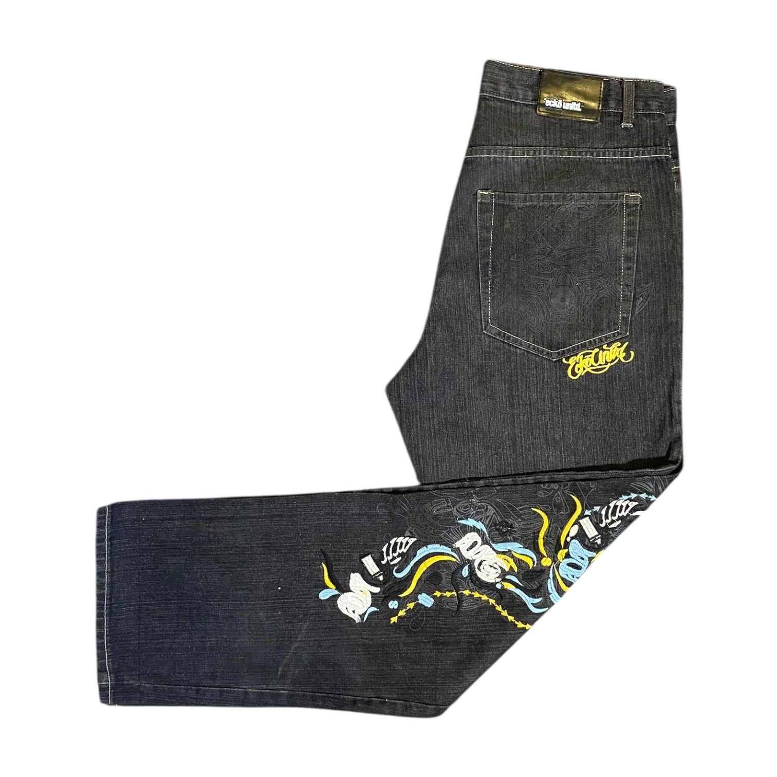 Step into Y2K nostalgia with these vintage Ecko Unltd jeans in a washed dark grey tone. Known for its bold aesthetics and streetwear roots, this pair balances comfort, structure, and unmistakable edge — ideal for those who appreciate authentic early 2000s style.