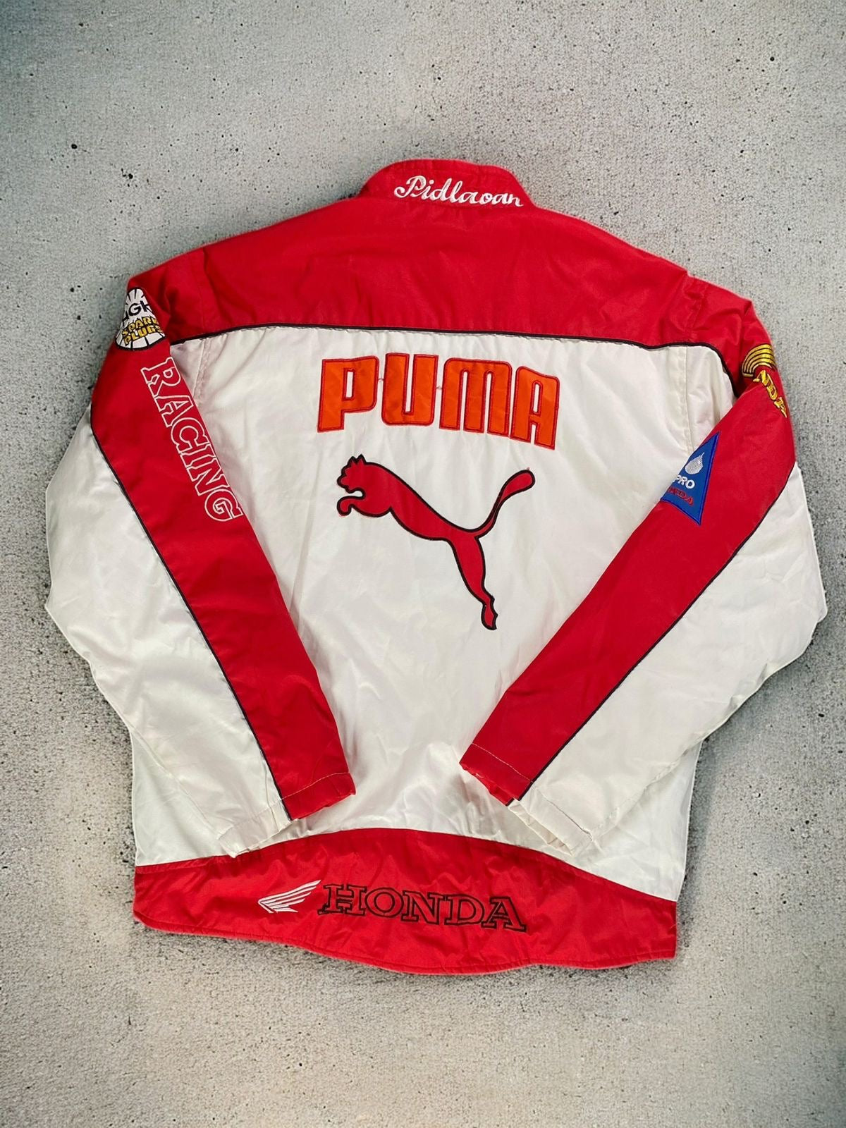 Vintage PUMA Motor Racing Jacket with classic racing-inspired graphics and bold sporty style. A standout piece for motorsport fans and streetwear collectors alike.