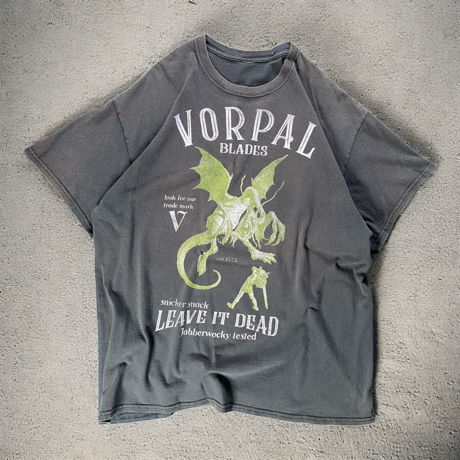 Vorpal Blades Leave It Dead T-shirt — a bold vintage graphic tee with edgy design and striking typography. Perfect for streetwear enthusiasts or collectors of unique band-inspired pieces.