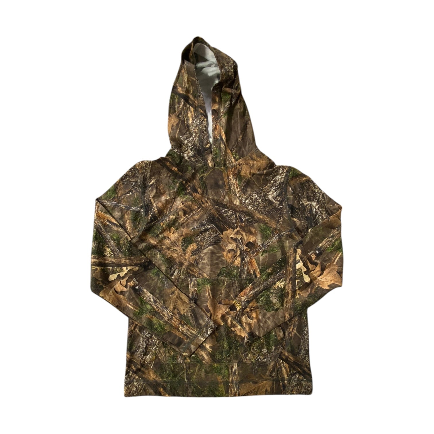 This hoodie is in great condition, with minimal signs of wear aside from a few stains in the inner lining of the hoodie. The camo pattern remains vibrant, and the fabric continues to provide warmth and comfort, making it a great addition to your outdoor or casual wardrobe.