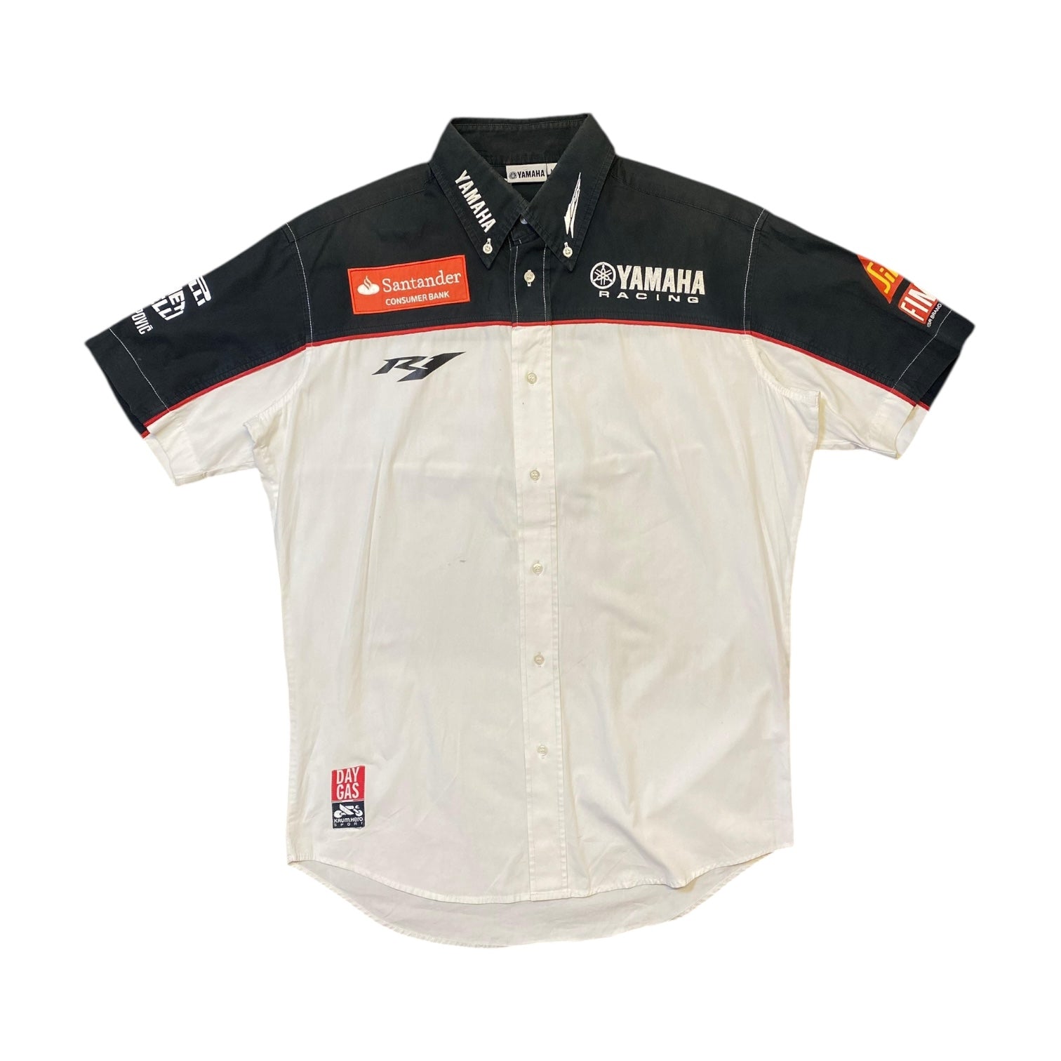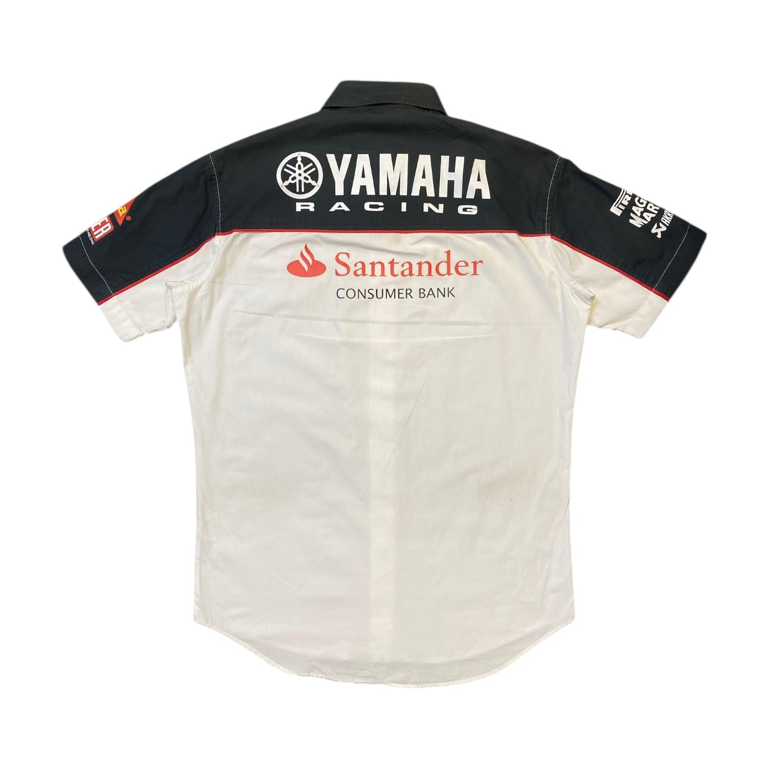 Sporting a sleek black and white colorway, the Yamaha Racing Santander Button-Up T-Shirt channels motorsport heritage with a modern streetwear twist. Its crisp button-up design paired with bold branding makes it a versatile piece for racing fans and style seekers alike.